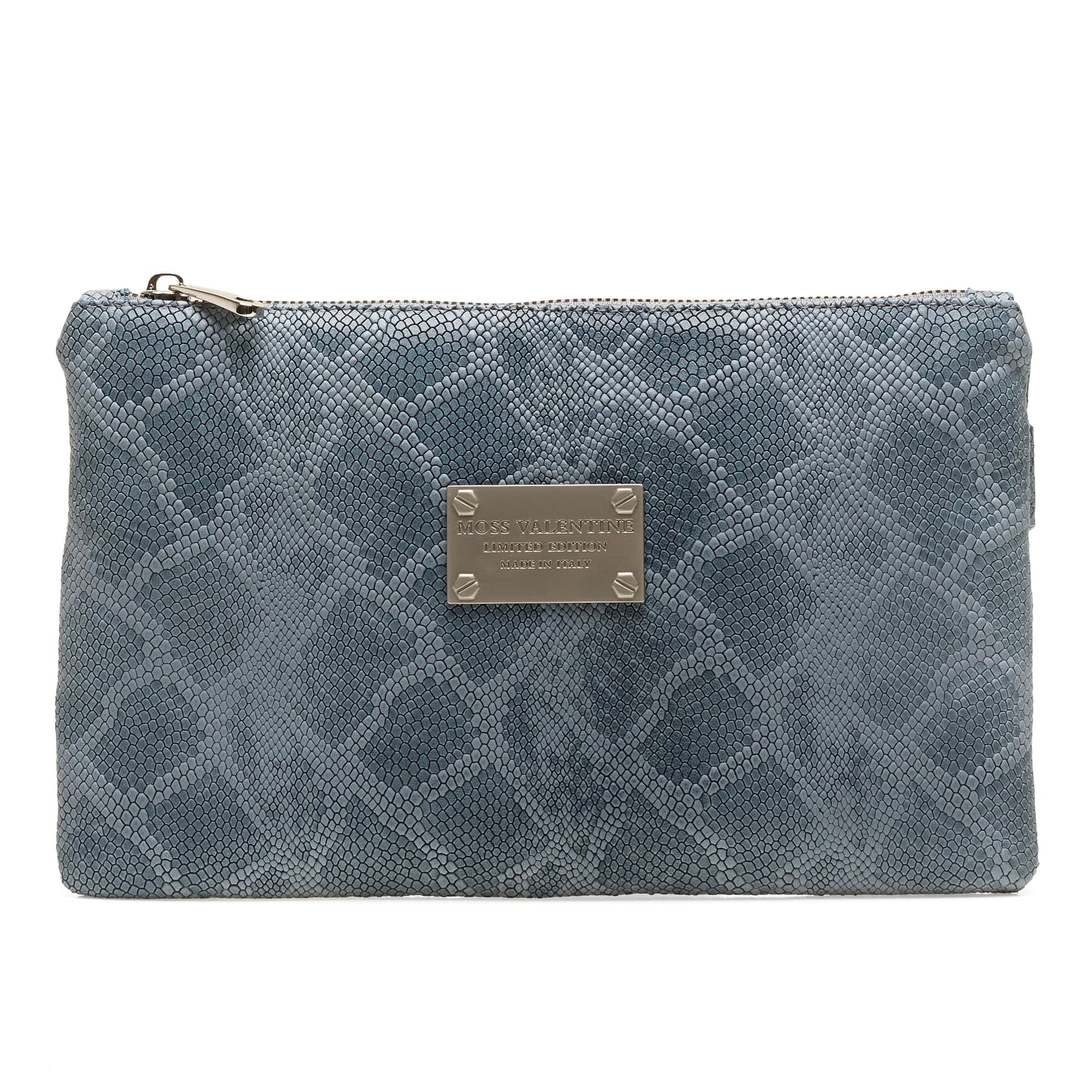 Meticulously handcrafted in Italy, this clutch is made from soft, premium Boa-embossed leather. Its refined silhouette and luxurious texture reflect true Italian craftsmanship. The Matt silver-tone logo plaque adds a touch of sophistication, making it a timeless accessory for both formal and casual occasions.