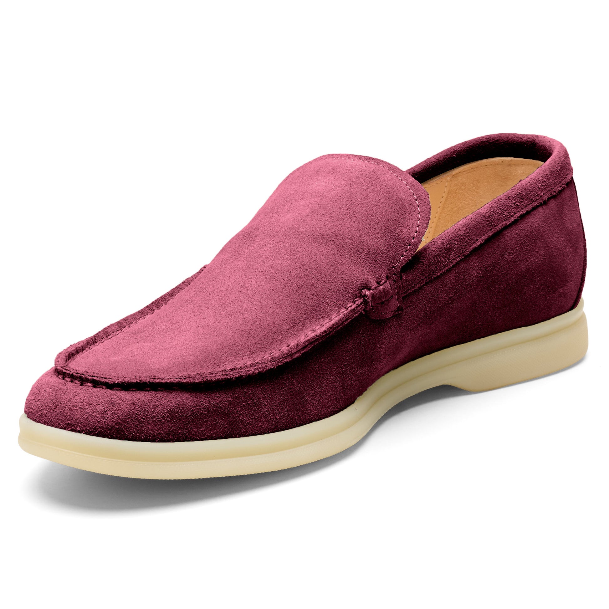 This premium bordo loafer is crafted from soft, high-quality suede, offering a perfect balance of elegance and casual style. Its clean silhouette and minimal design details make it an ideal choice for spring and summer, whether paired with everyday outfits or smart casual looks. The lightweight cream-colored rubber sole provides excellent comfort and grip, while the hand-stitched details reflect refined craftsmanship.
