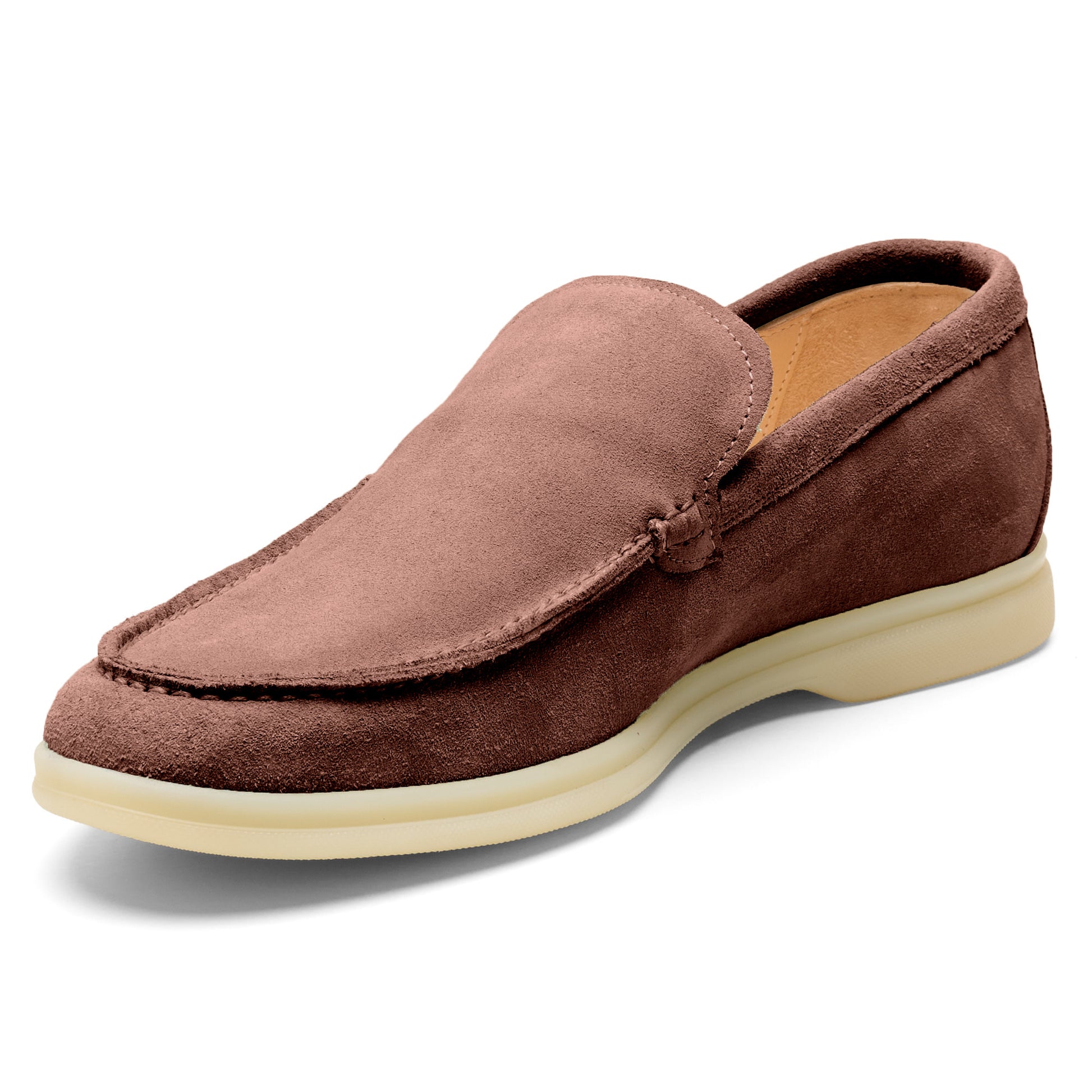 This premium brown loafer is crafted from soft, high-quality suede, offering a perfect balance of elegance and casual style. Its clean silhouette and minimal design details make it an ideal choice for spring and summer, whether paired with everyday outfits or smart casual looks. The lightweight cream-colored rubber sole provides excellent comfort and grip, while the hand-stitched details reflect refined craftsmanship.