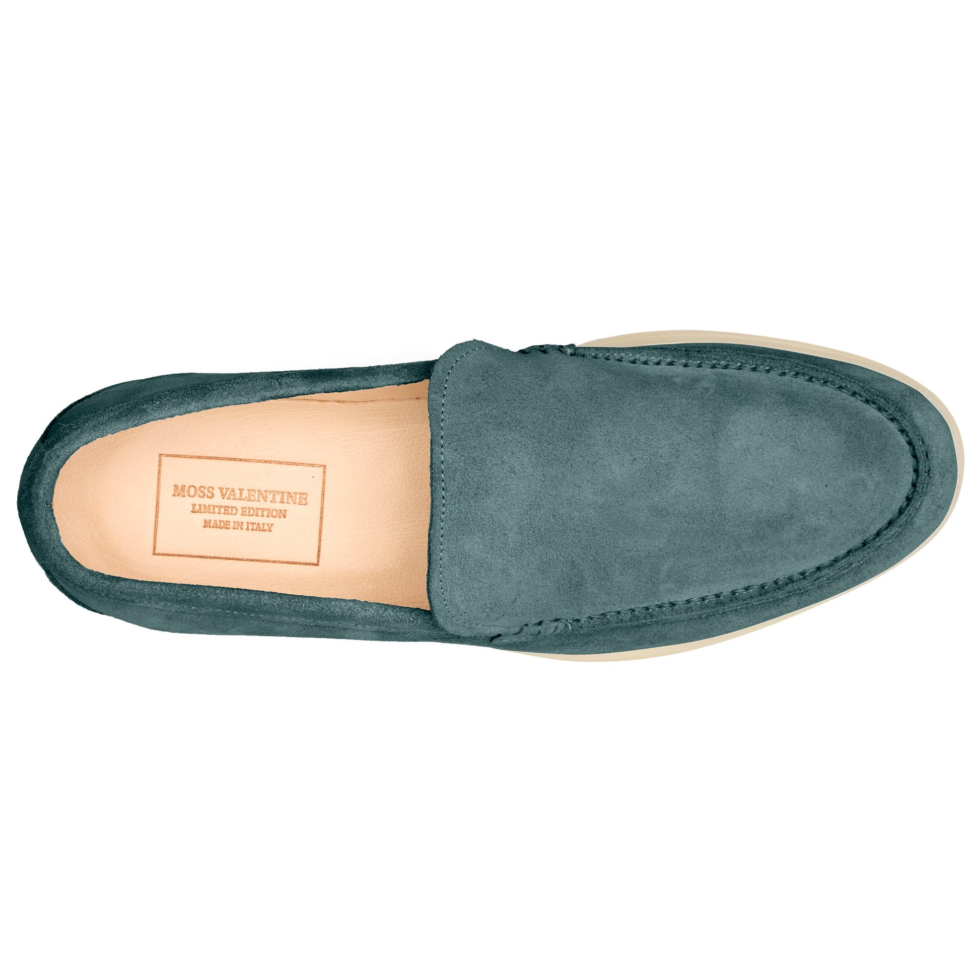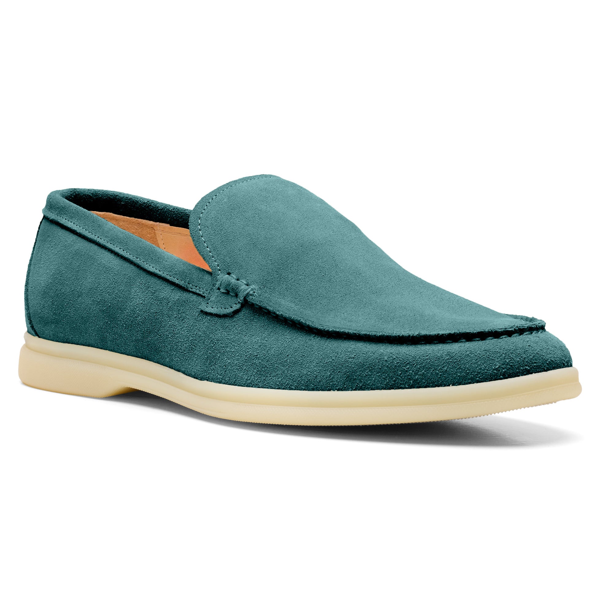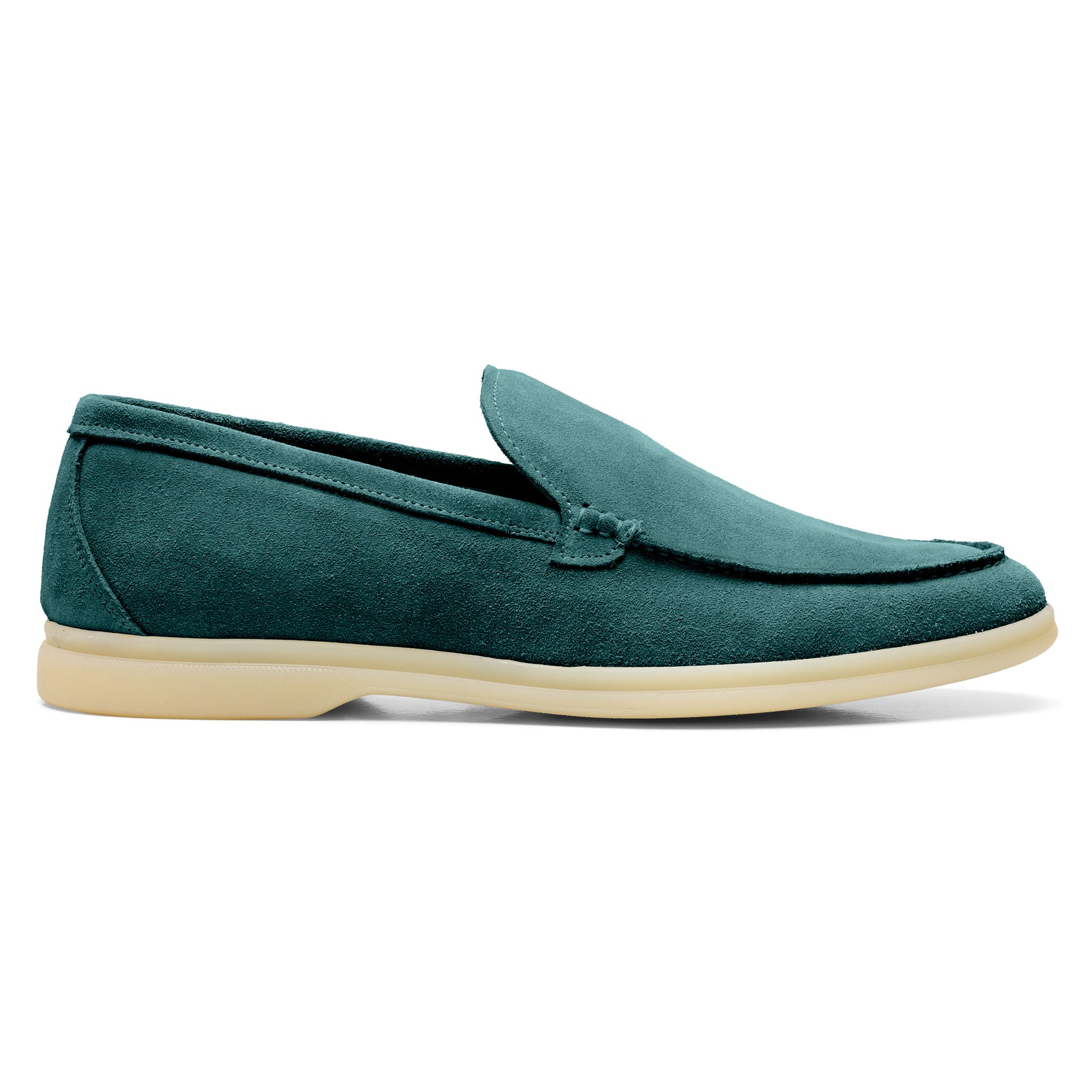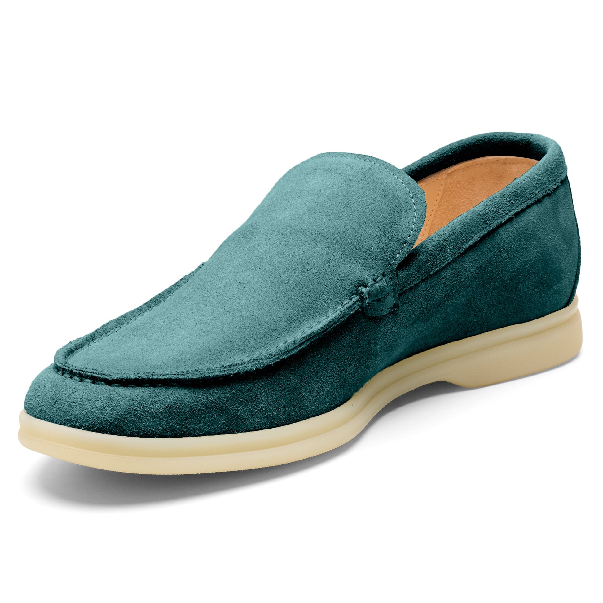 This premium green loafer is crafted from soft, high-quality suede, offering a perfect balance of elegance and casual style. Its clean silhouette and minimal design details make it an ideal choice for spring and summer, whether paired with everyday outfits or smart casual looks. The lightweight cream-colored rubber sole provides excellent comfort and grip, while the hand-stitched details reflect refined craftsmanship.