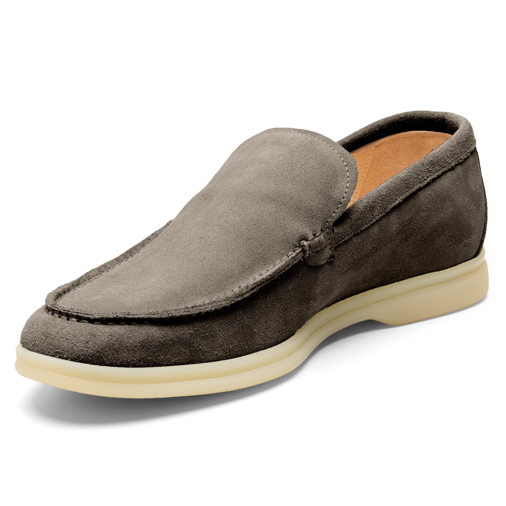 This premium grey loafer is crafted from soft, high-quality suede, offering a perfect balance of elegance and casual style. Its clean silhouette and minimal design details make it an ideal choice for spring and summer, whether paired with everyday outfits or smart casual looks. The lightweight cream-colored rubber sole provides excellent comfort and grip, while the hand-stitched details reflect refined craftsmanship.