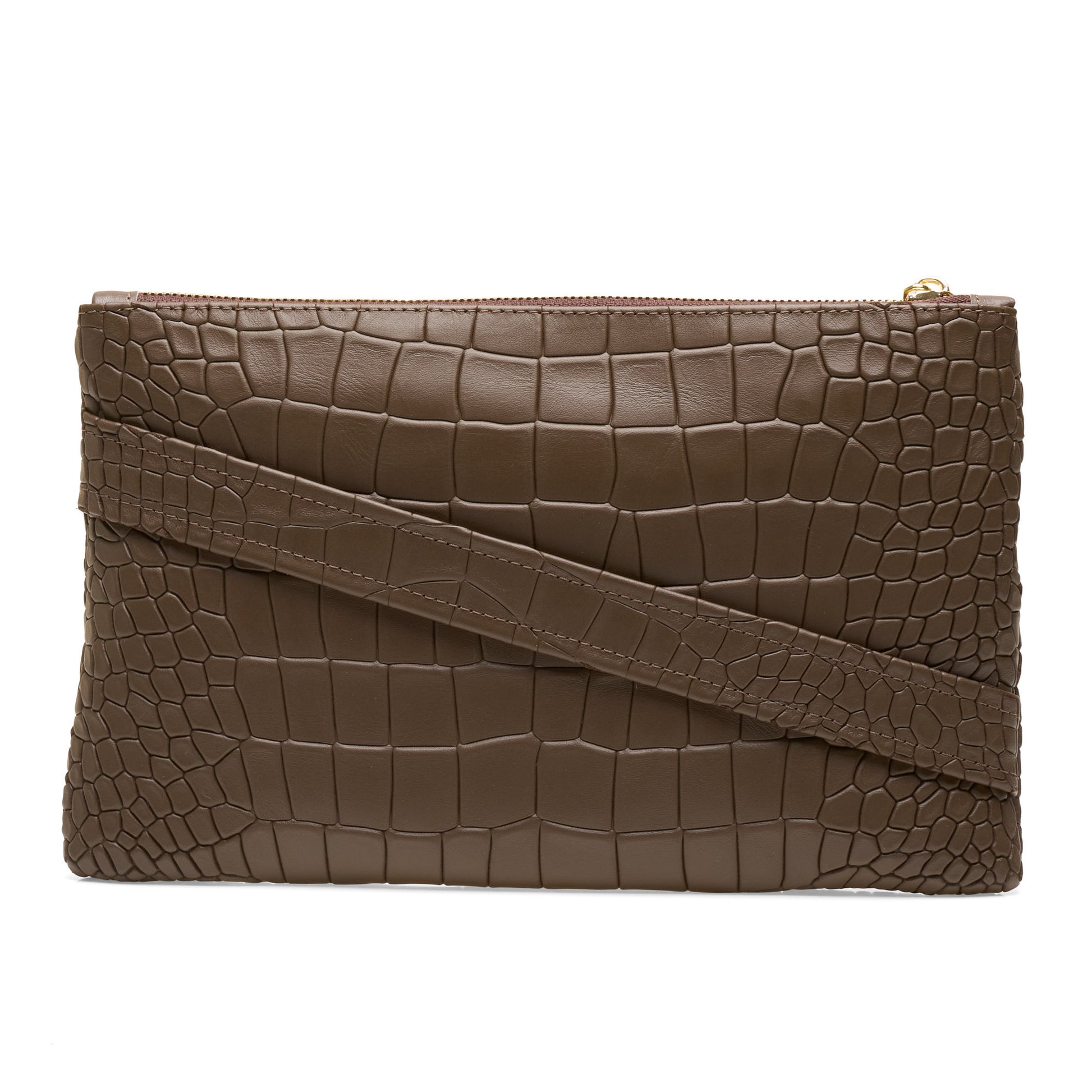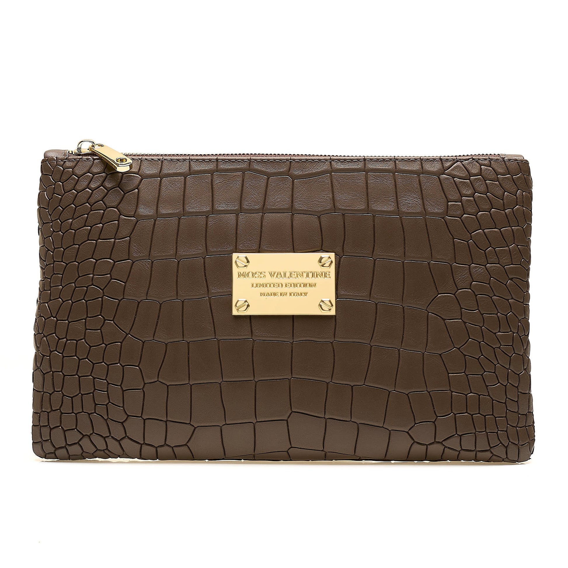 Meticulously handcrafted in Italy, this clutch is made from soft, premium croc-embossed leather. Its refined silhouette and luxurious texture reflect true Italian craftsmanship. The gold-tone logo plaque adds a touch of sophistication, making it a timeless accessory for both formal and casual occasions.