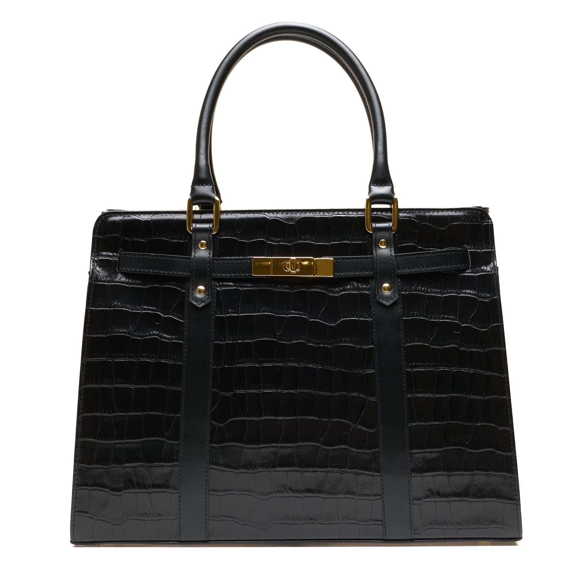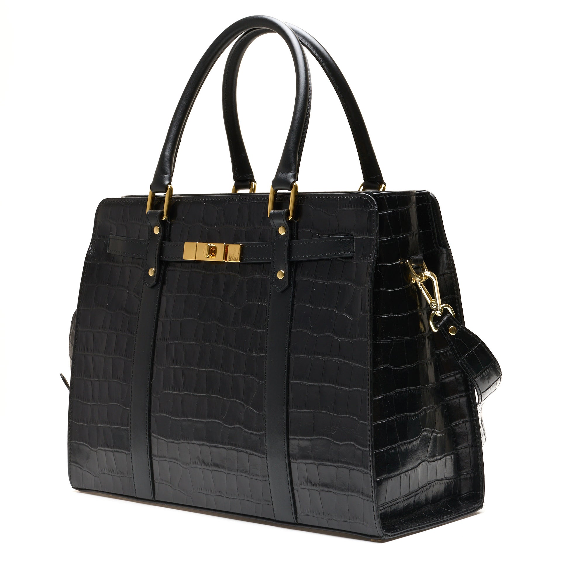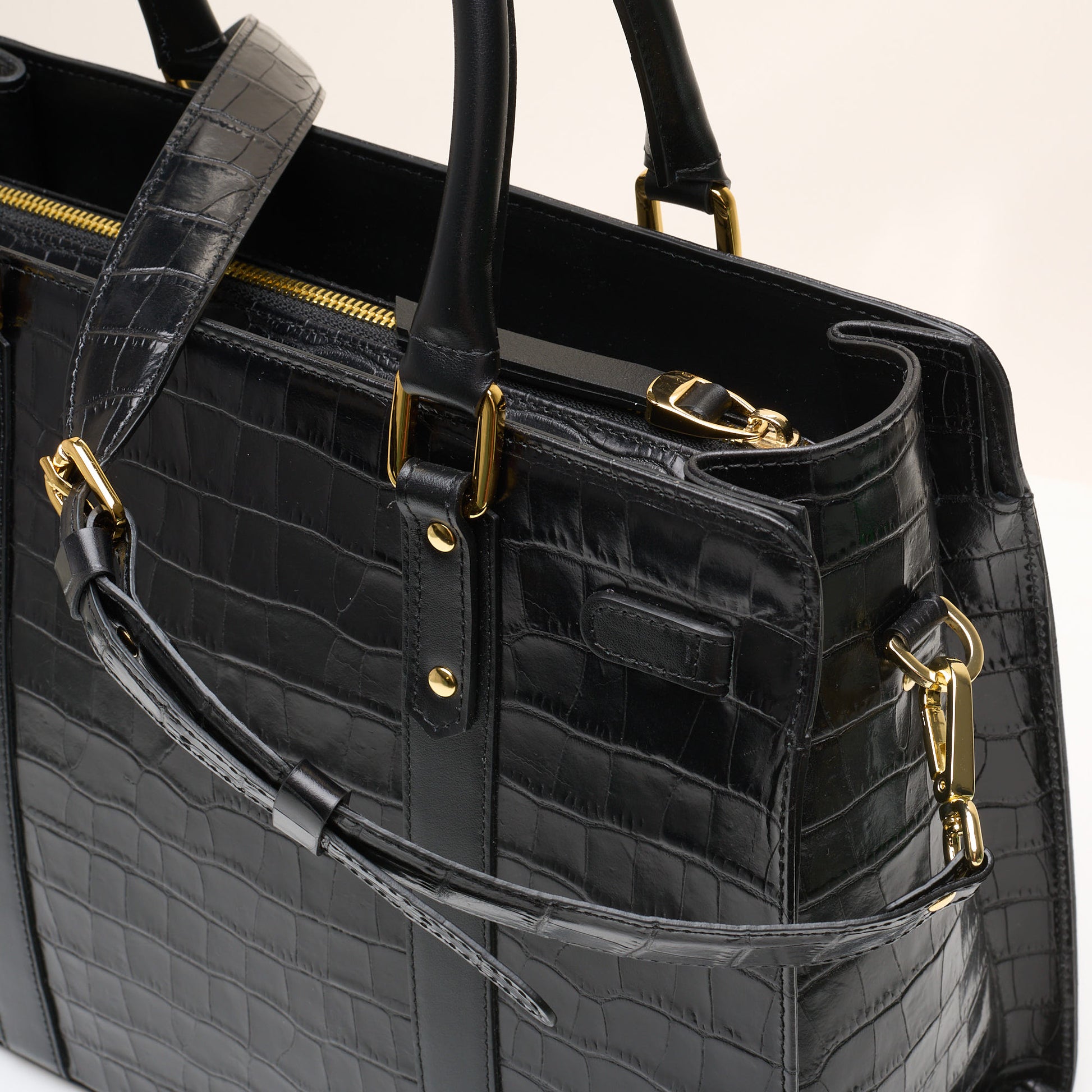 This turquoise crocodile-embossed bag brings a splash of summer luxury to your wardrobe. With its sharp structure, sculptural handle and high-gloss finish, it’s made to be noticed.