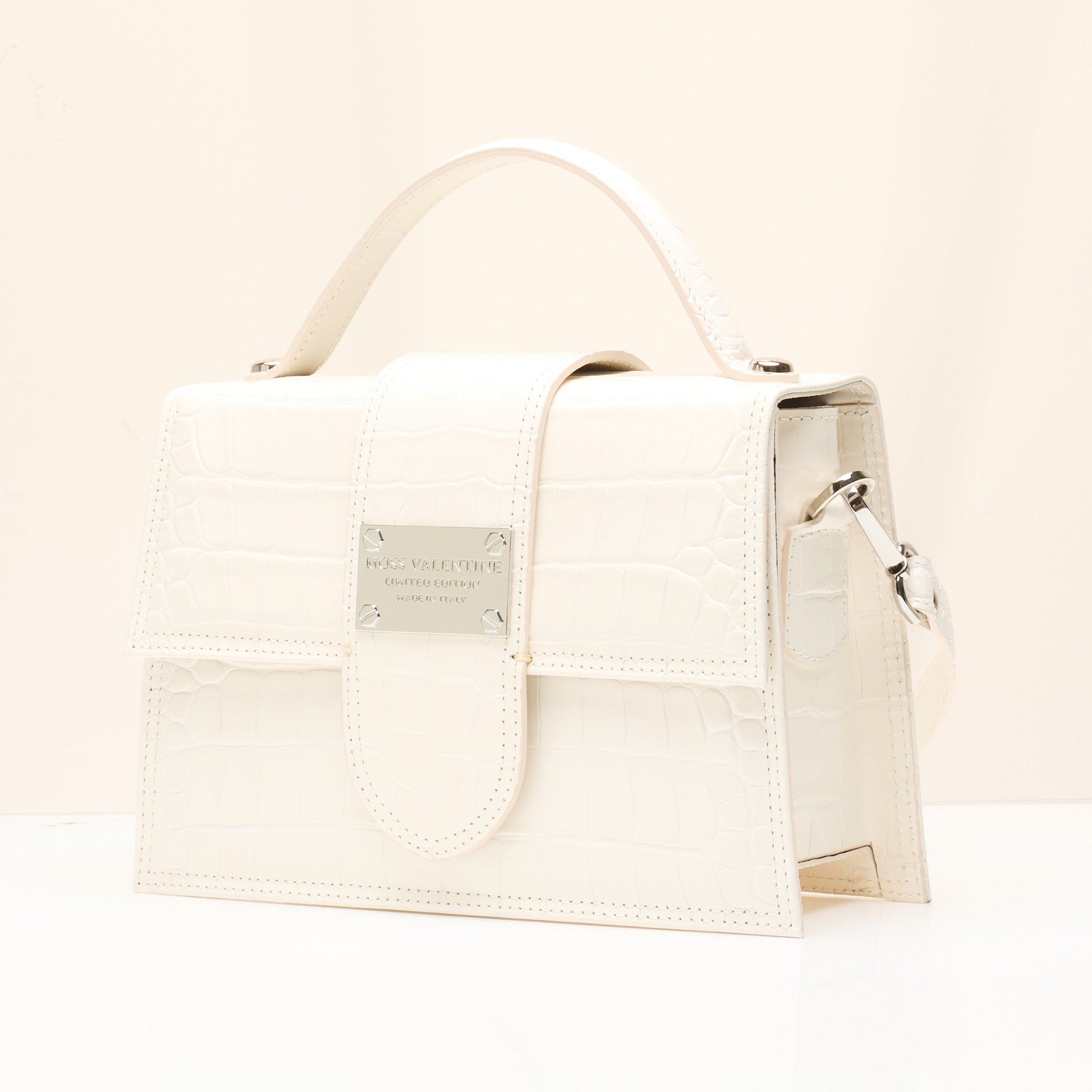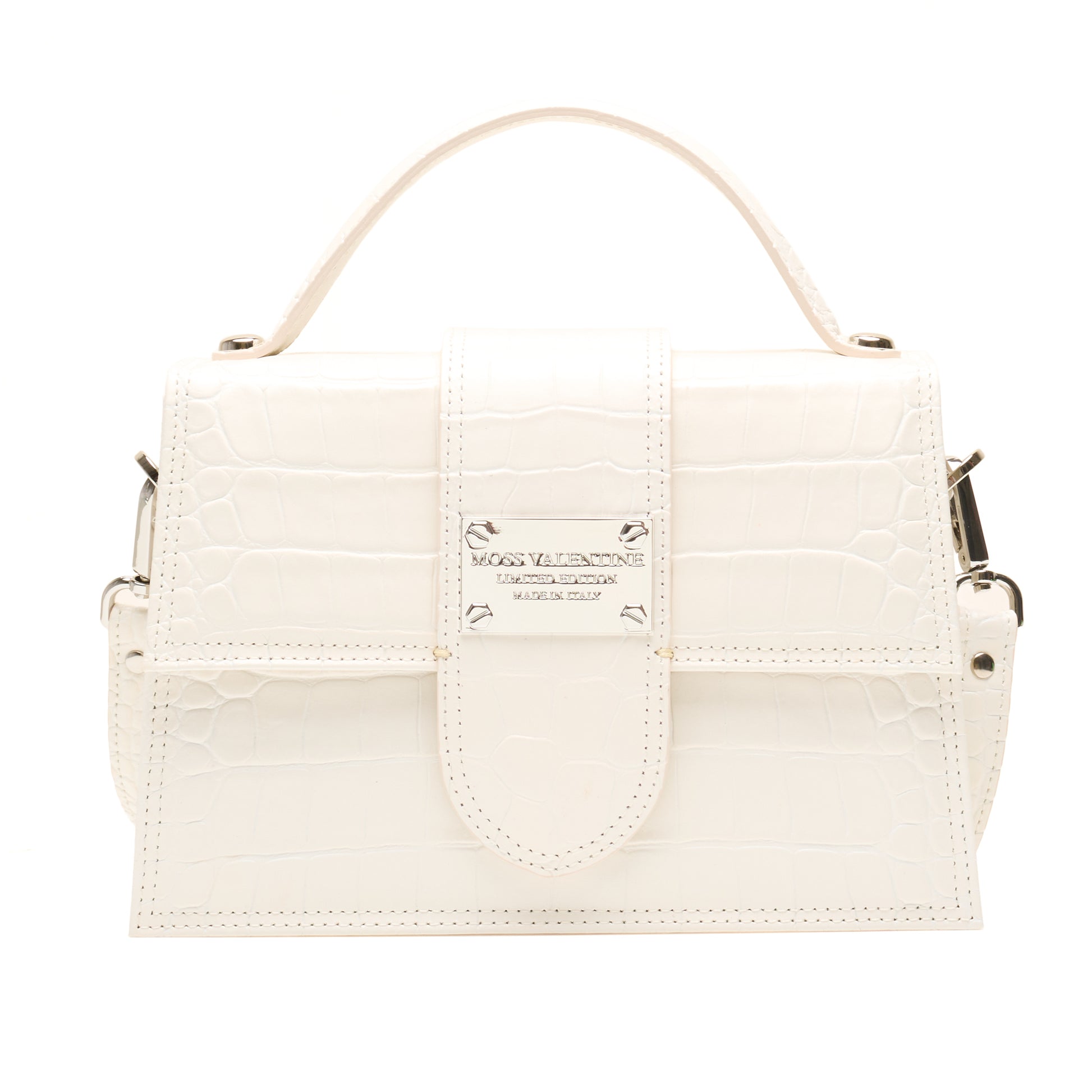 Silver-toned hardware and the signature MOSS VALENTINE plaque complete the look — because subtlety was never the goal.