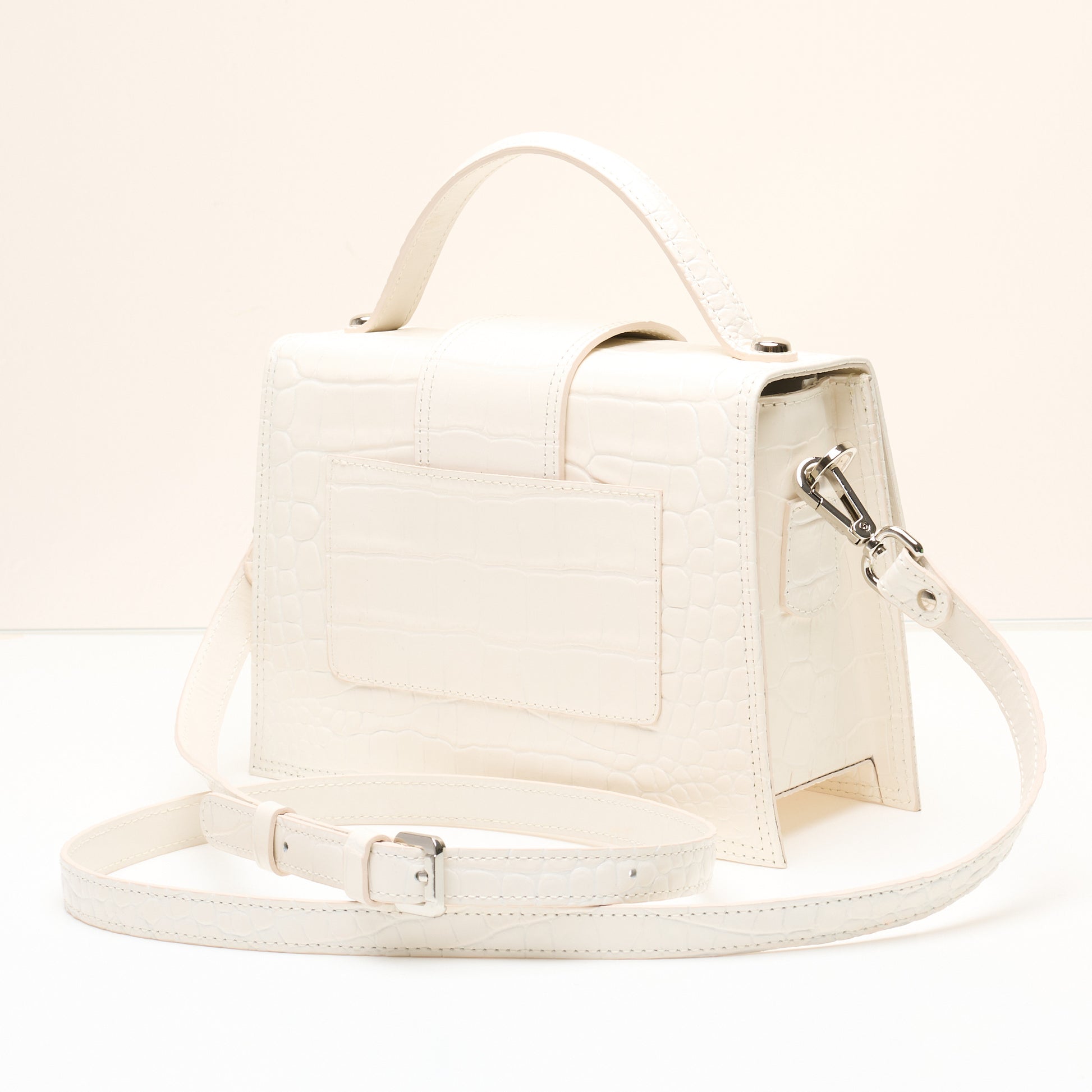 This turquoise crocodile-embossed bag brings a splash of summer luxury to your wardrobe. With its sharp structure, sculptural handle and high-gloss finish, it’s made to be noticed.
